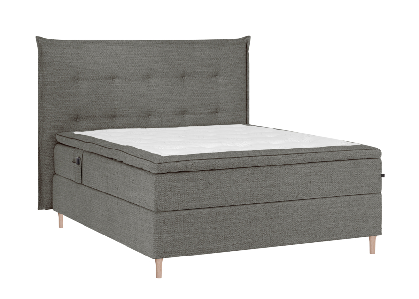Upplev enastående komfort och stil med vår exklusiva kontinentalsäng som är utrustad med en elegant sänggavel och vilar på stilrena, runda träben i vitoljad ek (14 cm). En kuvertsydd 10 cm tjock bäddmadrass Lux med Cloudtex-kärna som är mjuk, följsam och omsluter kroppen. Den är tillverkad med en öppnare cellstruktur vilket ger bättre ventilation och spänst. Vilket skapar en lyxig och behaglig sovupplevelse.