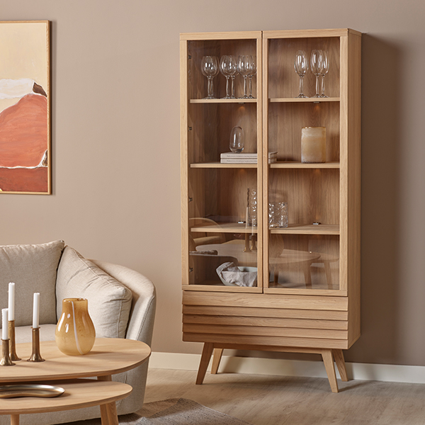 Skåp är en praktisk och stilren lösning för förvaring – oavsett om du vill visa upp eller dölja dina saker. Vitrinskåp med glasdörrar låter ditt vackra porslin, glas eller personliga favoriter få ta plats i inredningen, samtidigt som de skyddas från damm. Skåp med hela dörrar passar dig som vill skapa ett lugnt, enhetligt uttryck där innehållet hålls dolt men nära till hands.