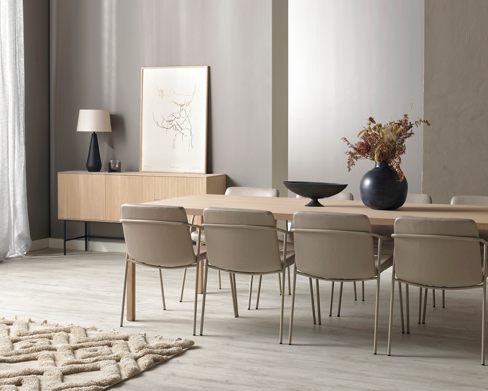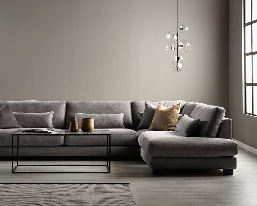 Nu kommer det gråa tillbaka igen, en färg som vi känner oss trygga med och som ger lugn. Den tidlösa elegansen i den gråa färgen är ett säkert och tryggt kort. Grått kan varieras på många sätt. Med en svagt blå underton blir uttrycket mjukare och mer avslappnat, medan en varm beige ton ger rummet en ombonad och inbjudande känsla. Den här trenden handlar om att skapa ett minimalistiskt hem med en varm själ där stora mattor, mjukt ljus och väl avvägda former skapar en balanserad helhet. Denna trenden passar den skandinaviska stilen, där man gärna bygger ett hem på ett långsiktigt sätt.