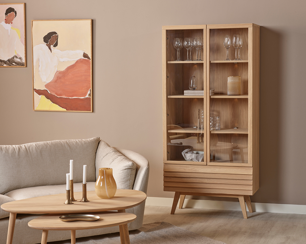 Rundade former, tubade silhuetter och organiska material ger inredningen ett mjukt uttryck. Även här låter man träet lyfta stilen, både i ljusa och mörka ytbehandligar. Här möts släta ytor med texturerade detaljer, stora mattor och textilier som bjuder in till ro och balans. Ljuset är varmt och ombonat, gärna från lampor i naturmaterial och neutrala färger.
