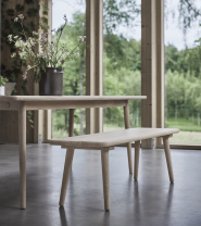 En bänk som har samma mjuka grundform som bordet i Miss Tailor-serien. Bänken är en nätt luftig möbel med svarvade mjuka ben, tillverkad i massiv ek.