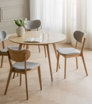 Kato är en stilren matstol i massiv, FSC-certifierad ek som kombinerar hållbarhet med skandinavisk formgivning. Den rundade ryggbrickan och den mjukt stoppade sitsen i slitstarkt tyg ger en bekväm sittupplevelse, perfekt för långa middagar. Med sin tidlösa design passar Kato utmärkt vid matbordet där estetik och funktion går hand i hand. En trästol som förenar naturliga material, komfort och hållbar stil i ett och samma uttryck.