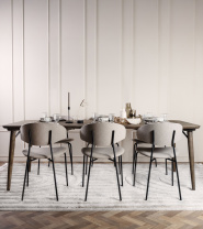 Designen på detta matbord är praktisk och diskret, men med en lekfull touch som förmedlar en mjuk och inbjudande känsla. Det gedigna hantverket ger bordet både hållbarhet och tidlös charm. Perfekt för såväl vardagliga måltider som större middagsbjudningar, där dess robusta konstruktion och eleganta yta skapar en naturlig samlingsplats.