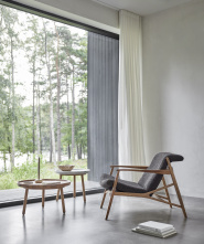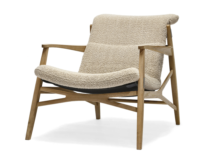 De mjukt frästa radierna runt kanter och detaljer gör att fåtöljen upplevs tunnare och mer elegant i sin silhuett. Resultatet är en möbel som känns lätt och luftig trots sin solida uppbyggnad. Den ergonomiskt utformade sitsen och den välbalanserade vinkeln ger en bekväm sittställning som passar lika bra för avkoppling som för sociala sammanhang.