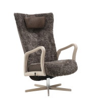 Fåtöljen är klädd i äkta fårskinn, valt för sin naturliga mjukhet, slitstyrka och höga komfort. Materialet skapar en behaglig sittupplevelse året runt och bidrar till en ombonad och exklusiv känsla i rummet. Fårskinn är ett levande naturmaterial, vilket innebär att variationer i struktur och färg förekommer och gör varje fåtölj personlig och unik.