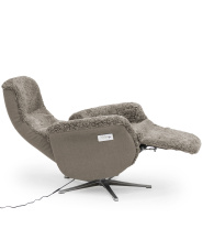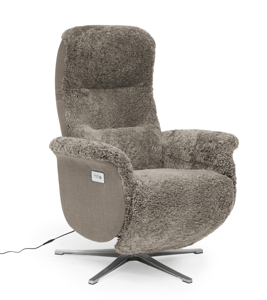 En prisvärd och funktionell fåtölj i mjukt och slitstarkt fårskinn som erbjuder hög komfort och anpassning efter dina behov. Fåtöljen är utrustad med flera smarta funktioner, bland annat automatisk justering av svankstöd som ger optimal avlastning för ryggen. Den steglösa lutningen av ryggstödet och det inbyggda fotstödet gör det enkelt att hitta en avslappnad position. (drivs av två motorer) samt justerbart nackstöd.