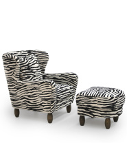 Denna matchande fotpall är formgiven för att komplettera fåtöljen Ginza och ge en ännu mer avslappnad och bekväm sittupplevelse. Med samma uttrycksfulla svartvita textil i grafiskt animaliskt mönster skapar pallen en harmonisk och genomtänkt helhet tillsammans med fåtöljen. Resultatet är en elegant kombination där design och funktion samspelar på ett naturligt sätt.