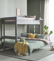 Siri är en stabil och funktionell familjevåningssäng som passar perfekt i gästrummet, barnrummet eller sommarstugan. Med sin platsbesparande design frigör den golvyta, vilket gör rummet mer rymligt och lättmöblerat. Du kan enkelt komplettera med praktisk förvaring för ännu bättre utnyttjande av utrymmet.
