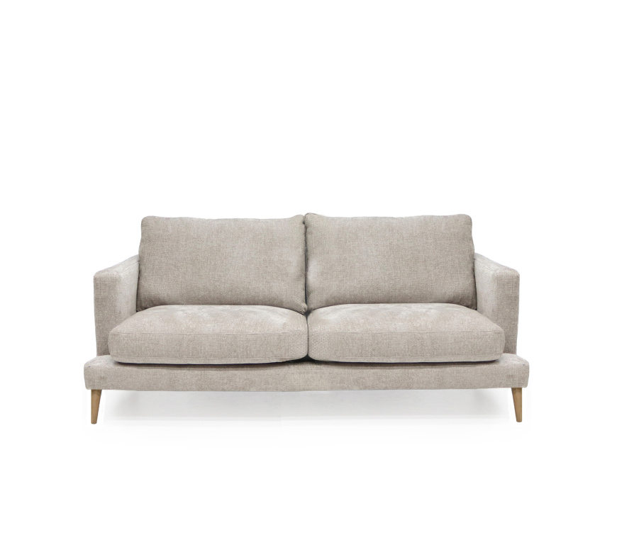 En modern och inbjudande soffa som förenar stilren design med hög komfort och kvalitet. Med en ryggplymå fylld med kallskum och dun erbjuder den skön sittkomfort för avkoppling. Varje detalj är omsorgsfullt utformad för att säkerställa hållbarhet och en stilfull känsla som varar i många år.