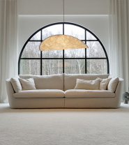 Soffan är både modern och tidlös, med mjuka, runda former och en exceptionellt hög komfort som gör den till en idealisk plats för avkoppling. Dess eleganta design passar perfekt i ett klassiskt hem, där den bidrar till en harmonisk och inbjudande atmosfär.