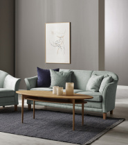 En nätt svensktillverkad kvalitetssoffa i klassisk stil. Sittkuddarna är vändbara. I butik kan du välja mellan hundratals olika tyger och benen finns i flera olika bets alternativ. Finns även som 2-sitssoffa och fåtölj. 2 st prydnadskuddar i samma tyg som soffan ingår.