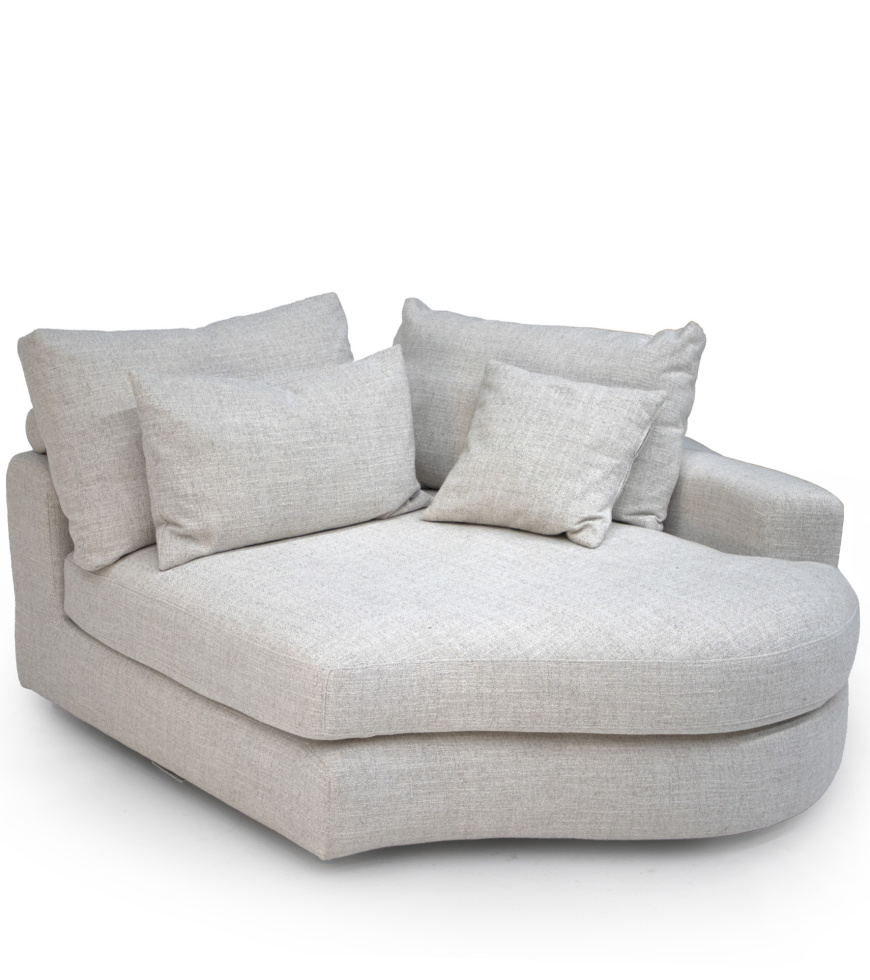 Den rundade formen omfamnar kroppen och ger en bekväm och inbjudande sittupplevelse. Divan-modulen skapar ett mjukt fokus i rummet och kan användas som en egenstående sittplats, ett läshörn eller ett elegant tillägg till en större soffgrupp. Den organiska formen gör modulen till en designmöbel som både syns och känns, oavsett placering.