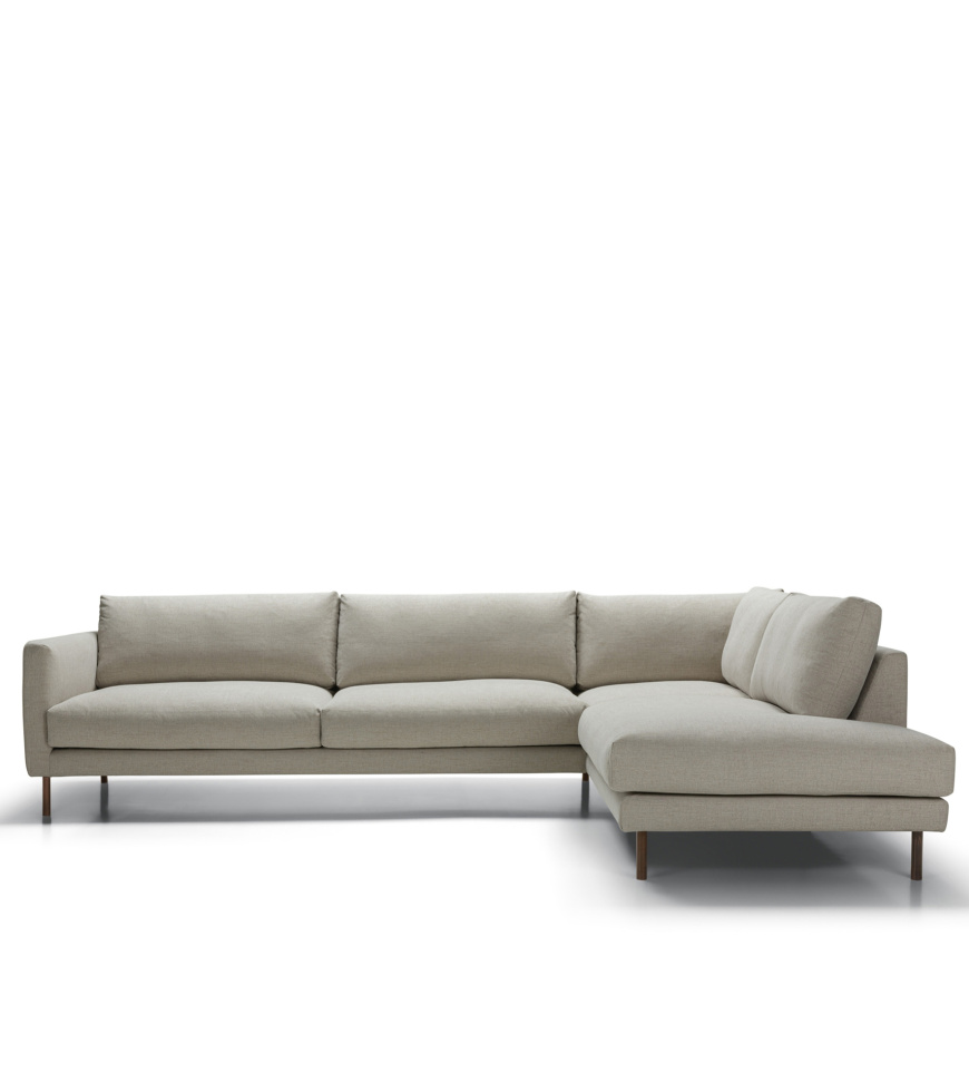 Billie hörnsoffa med öppet avslut är en stilren och inbjudande soffa som kombinerar skandinavisk design med hög komfort. Med sitt nätta formspråk, slanka ben och mjuka proportioner skapar den ett luftigt intryck samtidigt som den erbjuder gott om plats för både vardag och umgänge. Utförandet med öppet avslut utan armstöd ger soffan ett modernt och avslappnat uttryck som gör rummet mer öppet och flexibelt.
