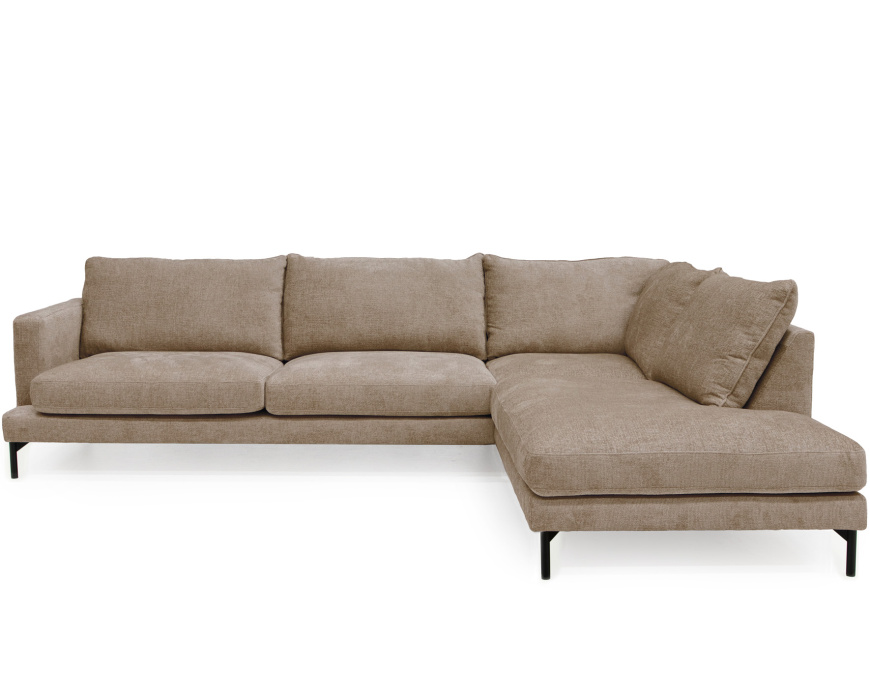 En modern och inbjudande hörnsoffa med ett öppet avslut som förenar stilren design med hög komfort och kvalitet. Med generösa mått och en ryggplymå fylld med kallskum och dun erbjuder den skön sittkomfort för avkoppling. Varje detalj är omsorgsfullt utformad för att säkerställa hållbarhet och en stilfull känsla som varar i många år.